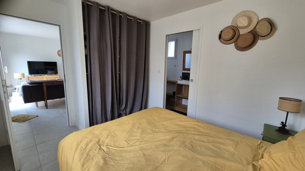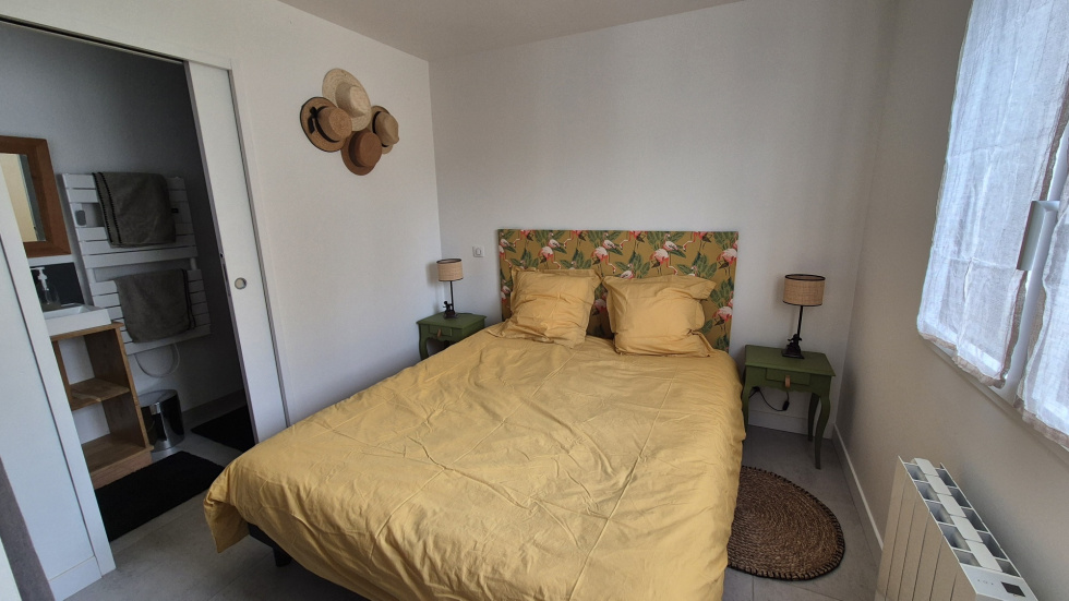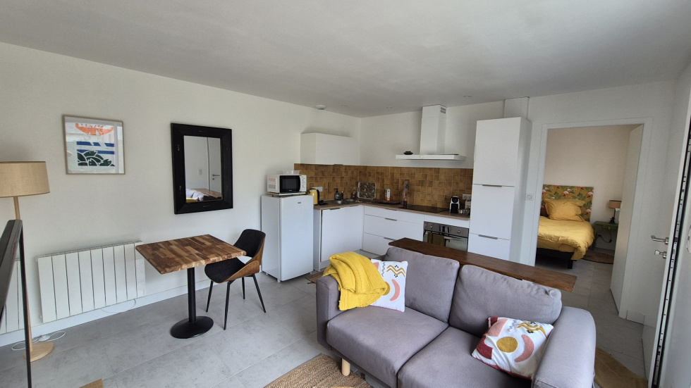Située au calme, sur un terrain de 500 m² envrion, petite maison récente et meublée de plain pied offrant : séjour avec cuisine équipée, chambre avec placard, salle de douche avec WC. En annexe : terrasse en bois exotique, jardin non clos. Idélae pour un investissement locatif ou comme pied à terre. Nous consulter.